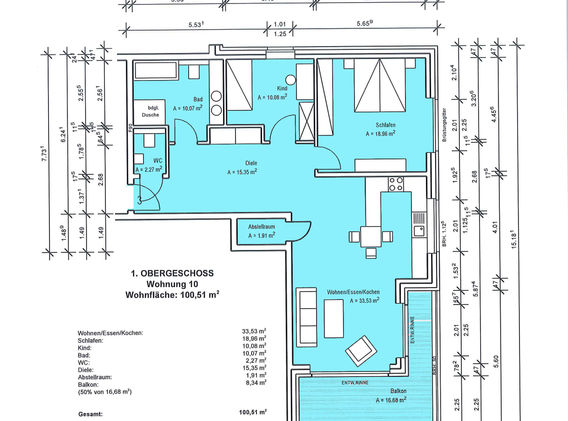 Balkon/Terrasse: 8,34 m² (50% von 16,68 m²)